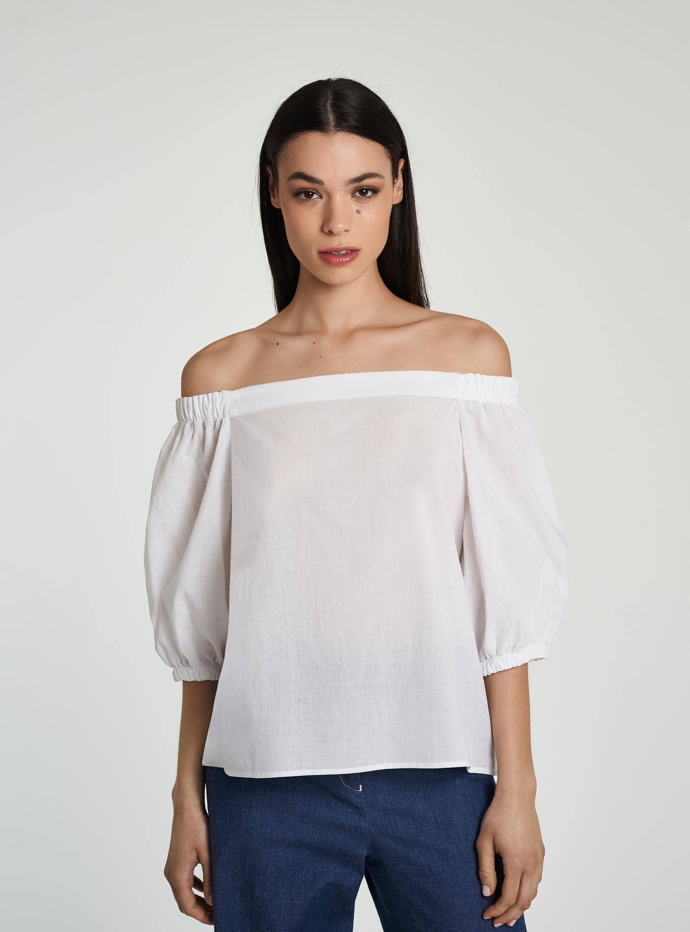 Men's inspired soft fit shirt with asymmetrical bottom. Cut carrè behind with cannon that gives volume to the garment. Regular shoulder slightly dropped.