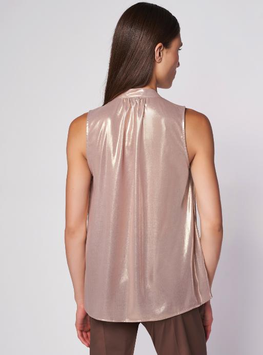 Regular-fit top, flared hem. Adjustable tie collar, keyhole front with gathered detail. Side slits, straight hem. Hip length.