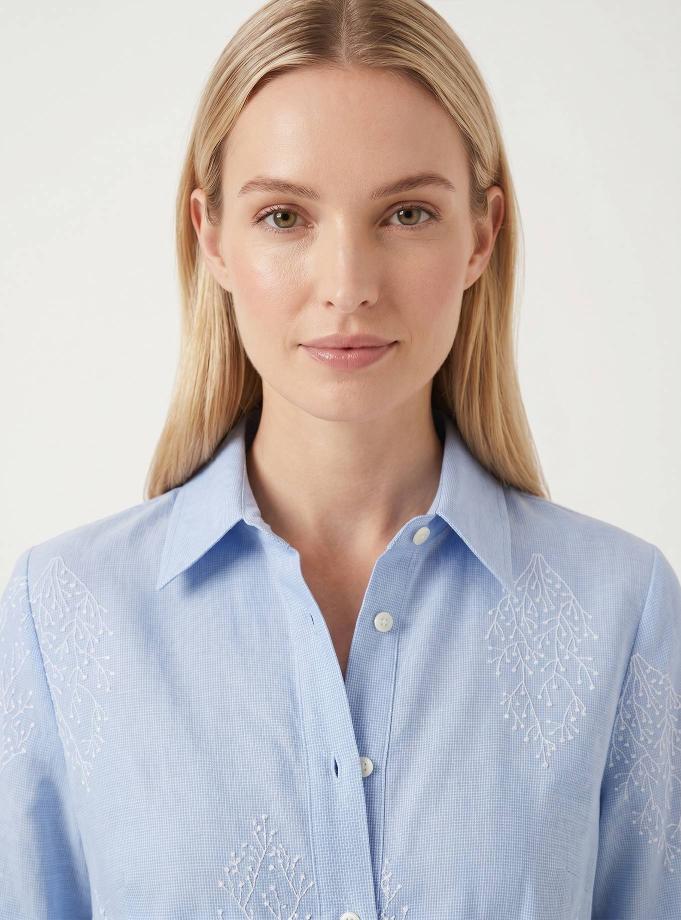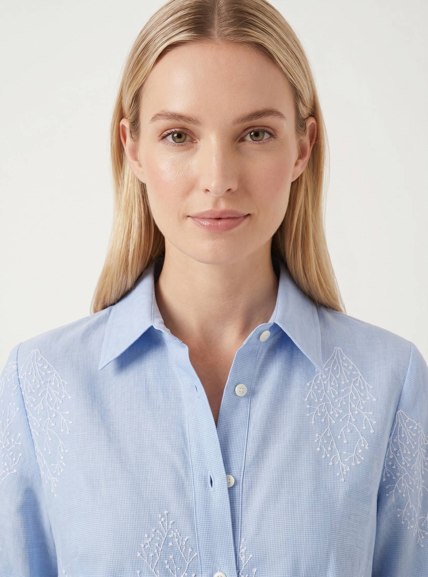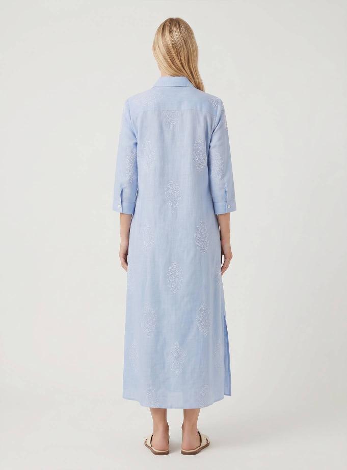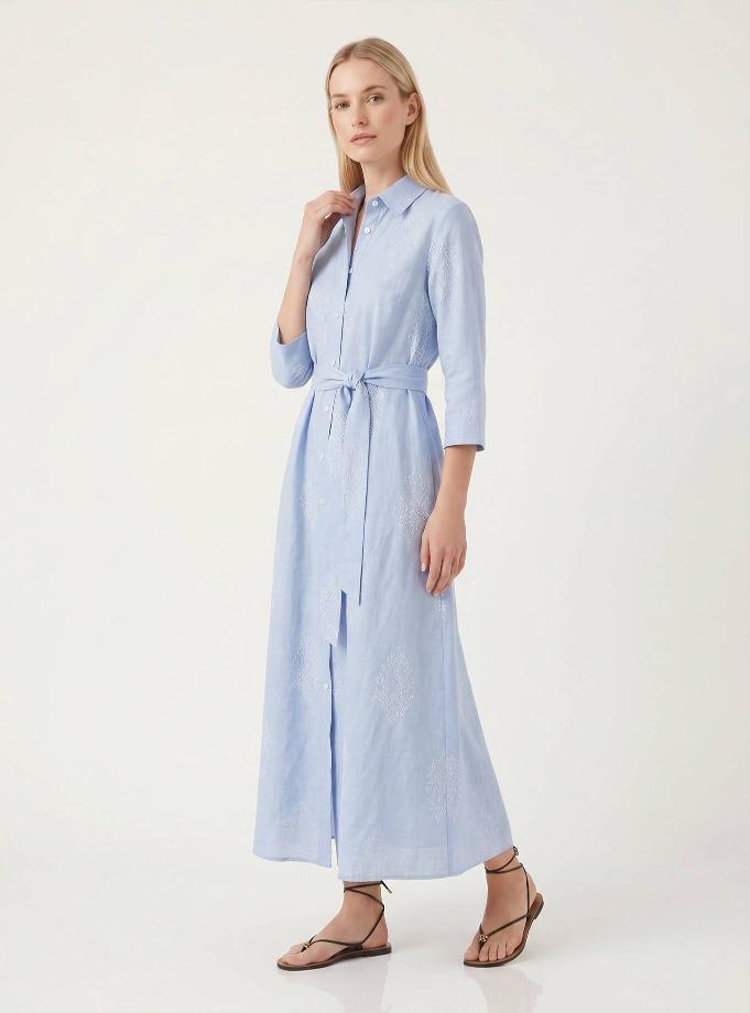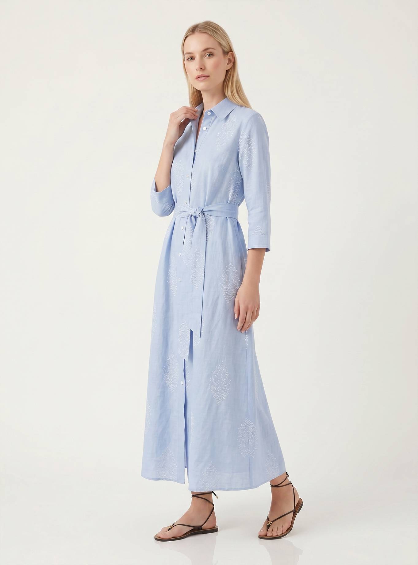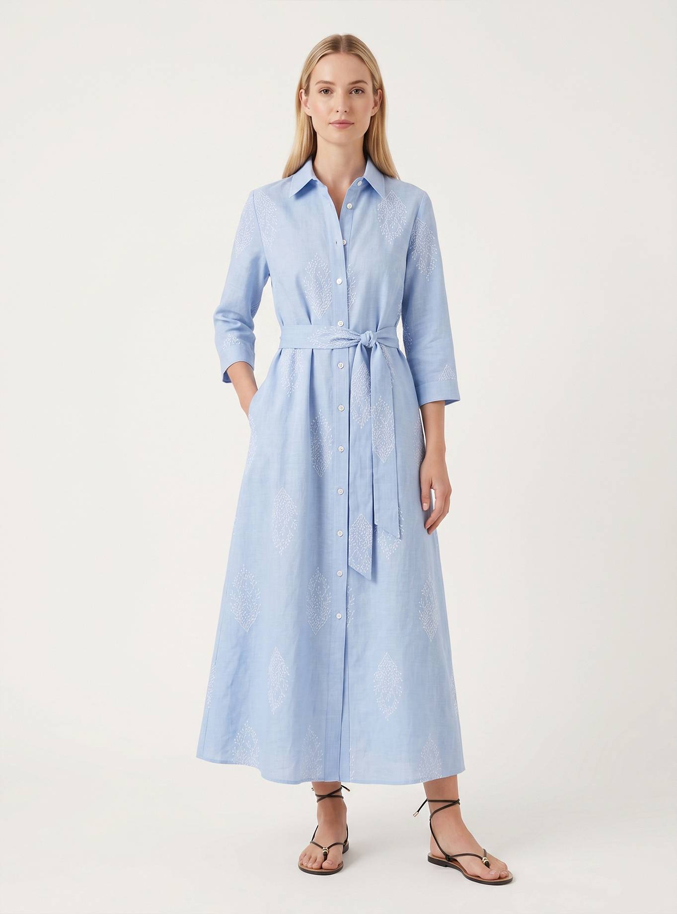 Long chemisier dress, regular fit with side slits. Pockets inserted in the side. Fabric belt to highlight the silhouette.