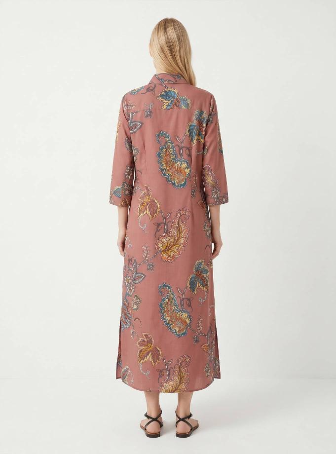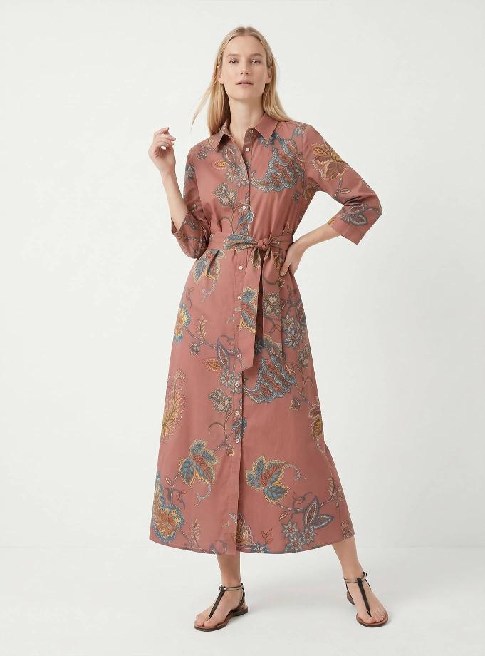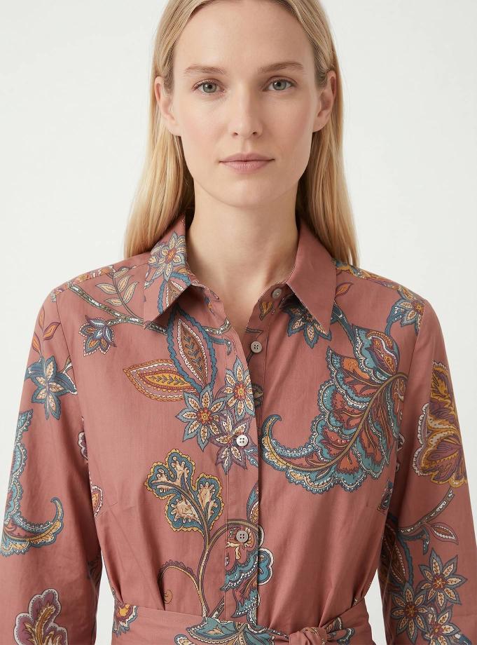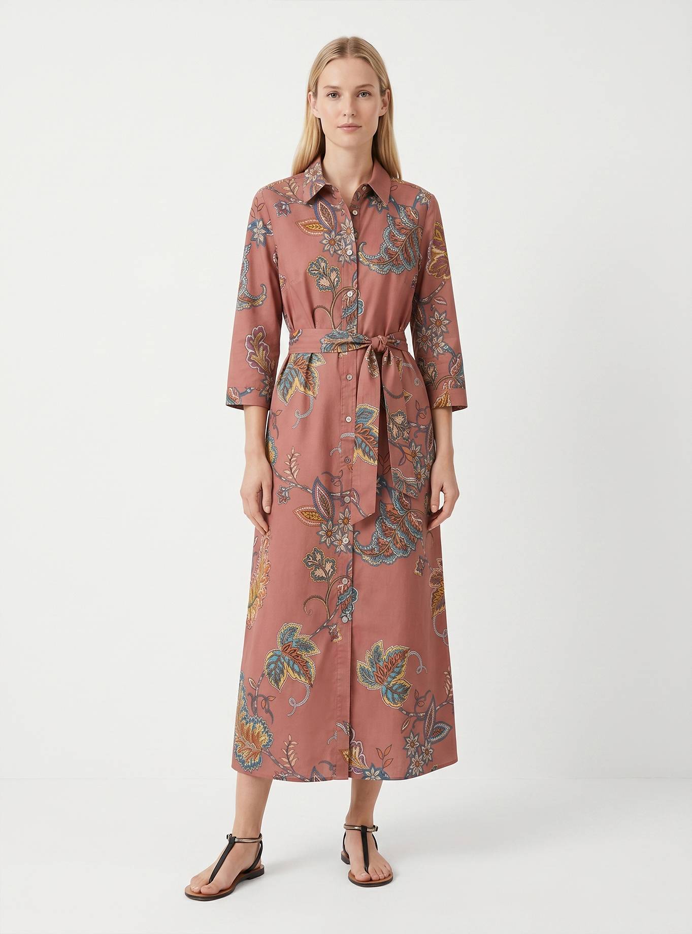 Long chemisier dress, regular fit with side slits. Pockets inserted in the side. Fabric belt to highlight the silhouette.