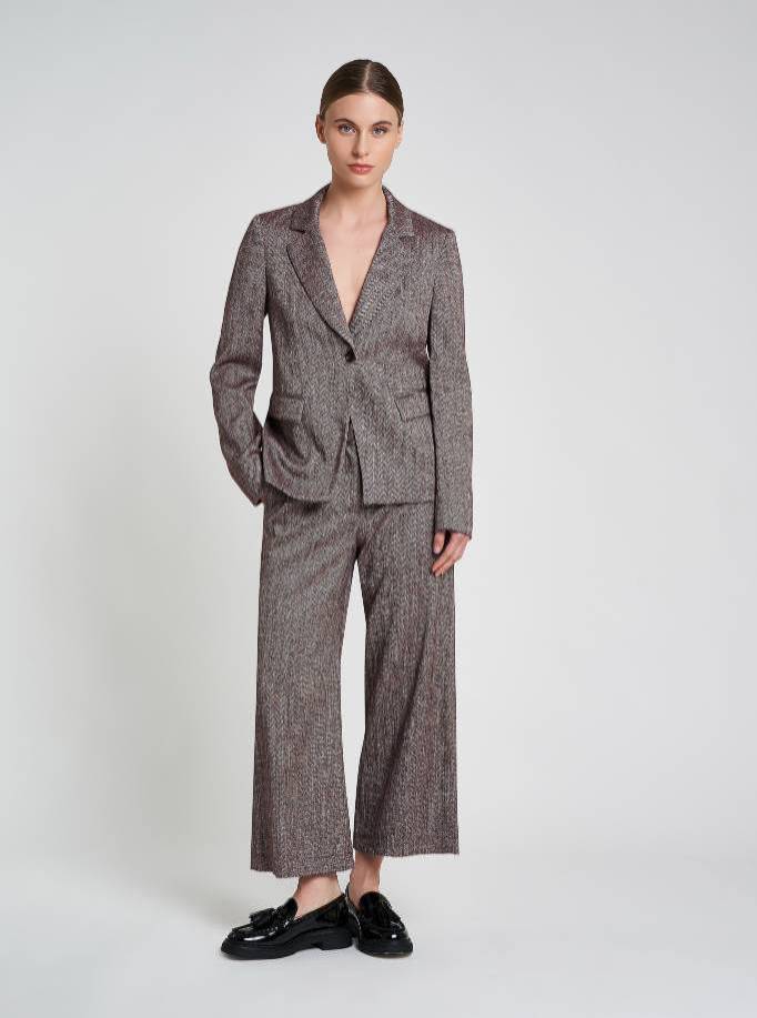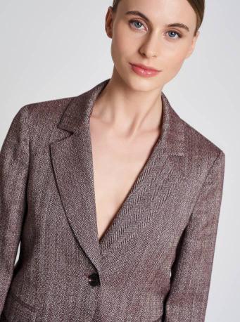Regular fit jacket. Single-breasted one button, deep V-lapels. Flap pockets on the front. Regular shoulder and sleeve. Side panels on the back. Medium-low sidewall length.