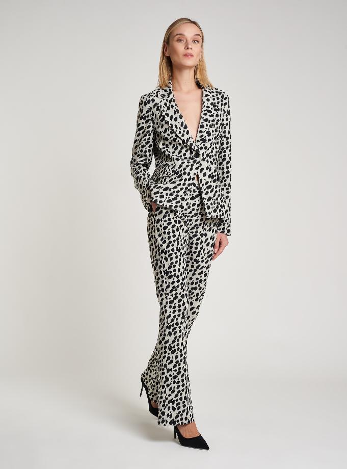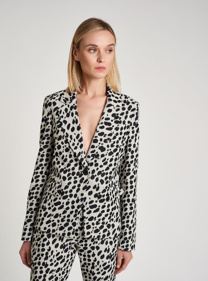 Regular fit jacket. Single-breasted one button, deep V-lapels. Flap pockets on the front. Regular shoulder and sleeve. Side panels on the back. Medium-low sidewall length.