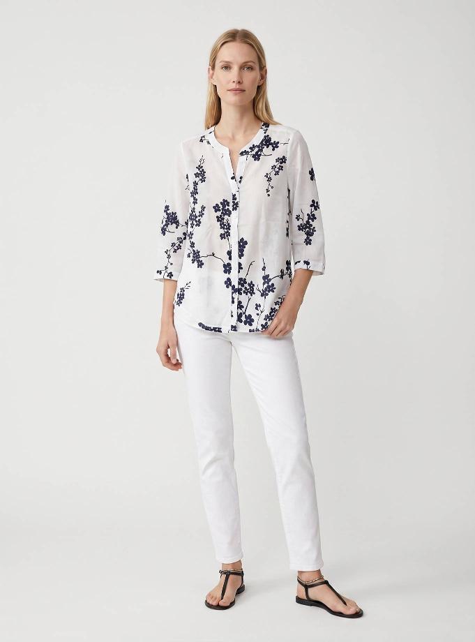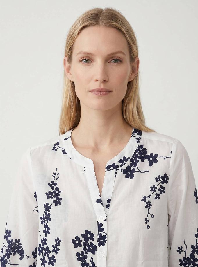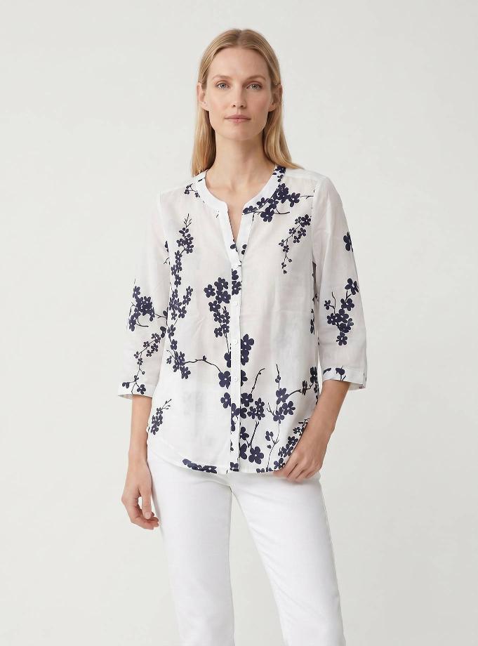 Soft fit shirt. "V" neck with round round Korean strap. Shoulder and regular sleeve, 3/4 short with cuff one button. Carrè behind with counterfold. High flank length.