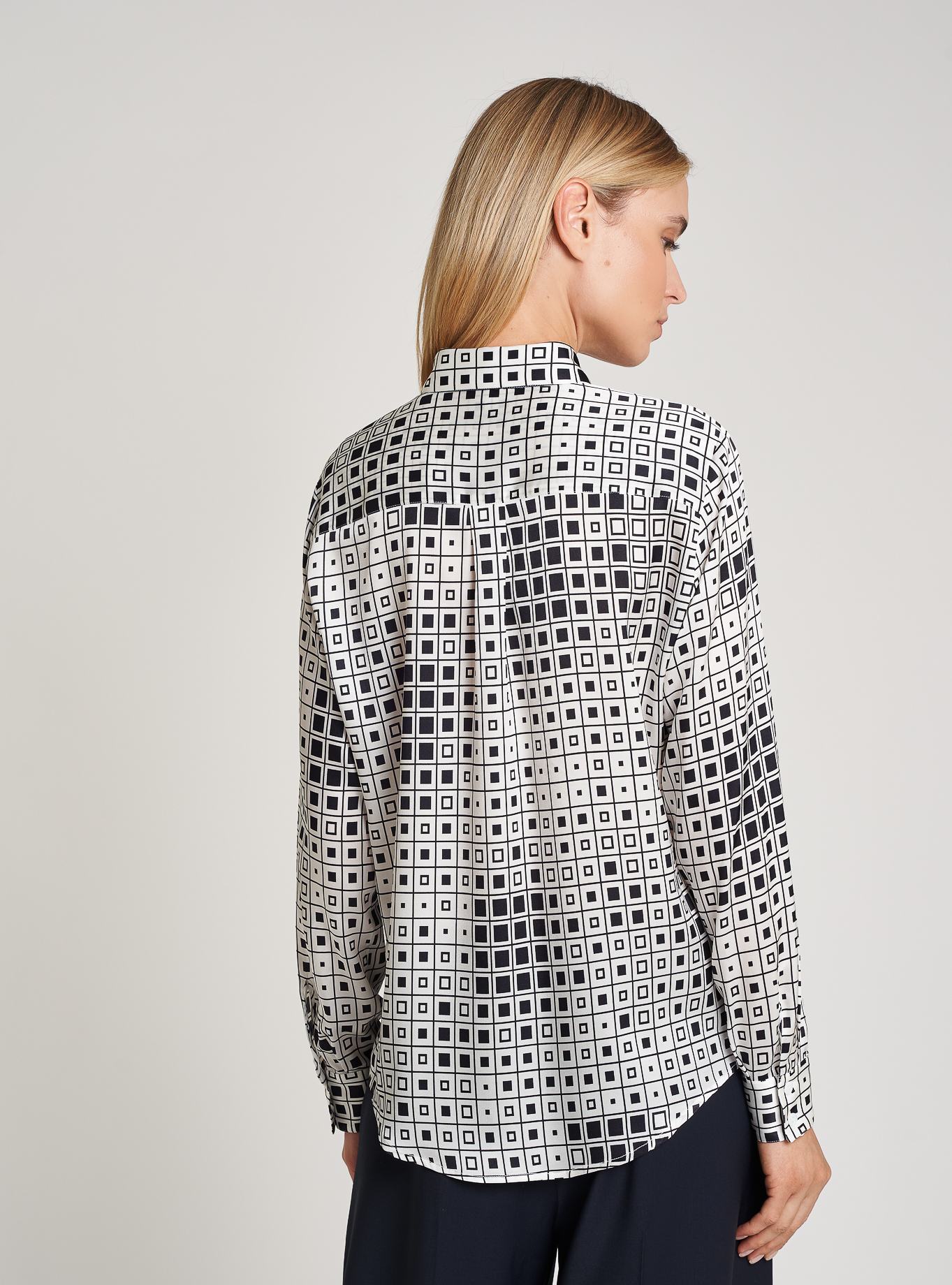 Regular fit shirt, straight fit. Shirt collar. Regular shoulder and sleeve, cuff with two buttons. Concealed buttoning. Back yoke with cannon. Rounded hem.