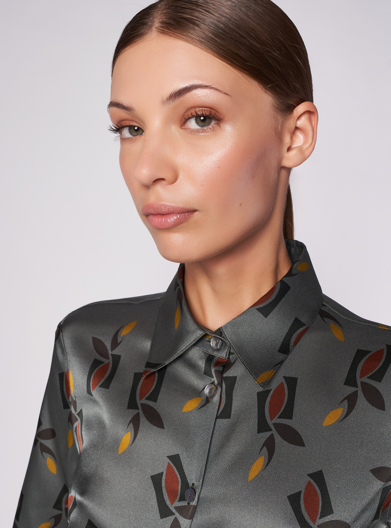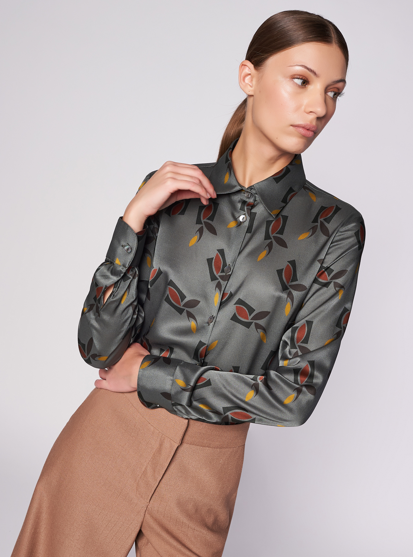 Regular fit shirt. Shirt collar. Regular sleeve with one button cuff. Medium-long shirt, medium-low hip length.