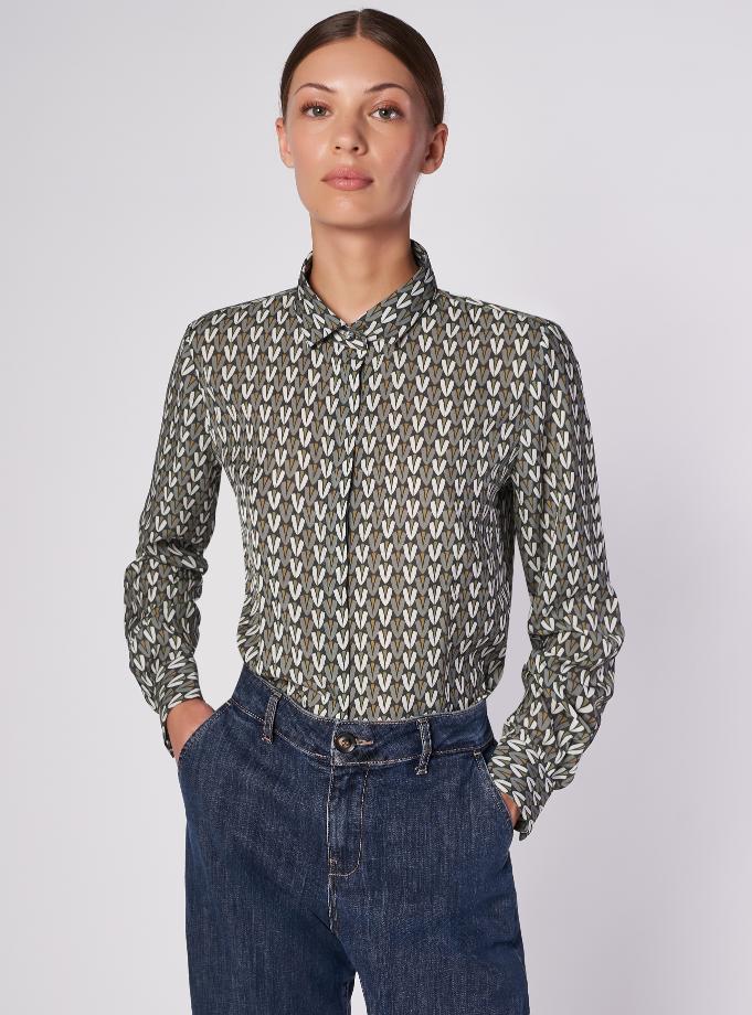 Regular fit shirt, straight fit. Shirt collar. Regular shoulder and sleeve, cuff with two buttons. Concealed buttoning. Back yoke with cannon. Rounded hem.