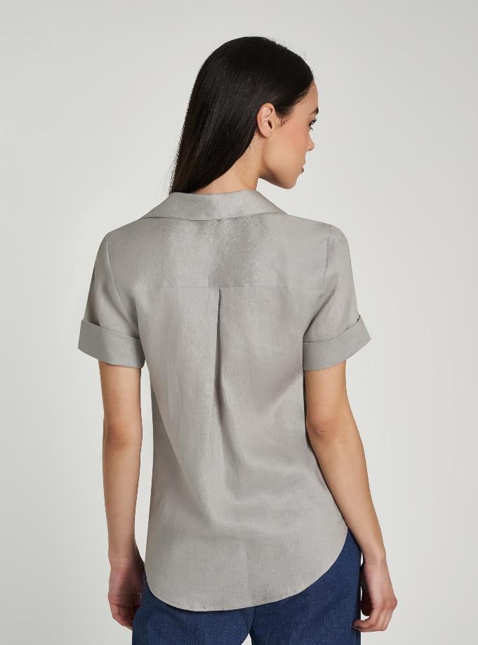 Regular fit shirt, vertical cuts that give a particular femininity. V-neck.