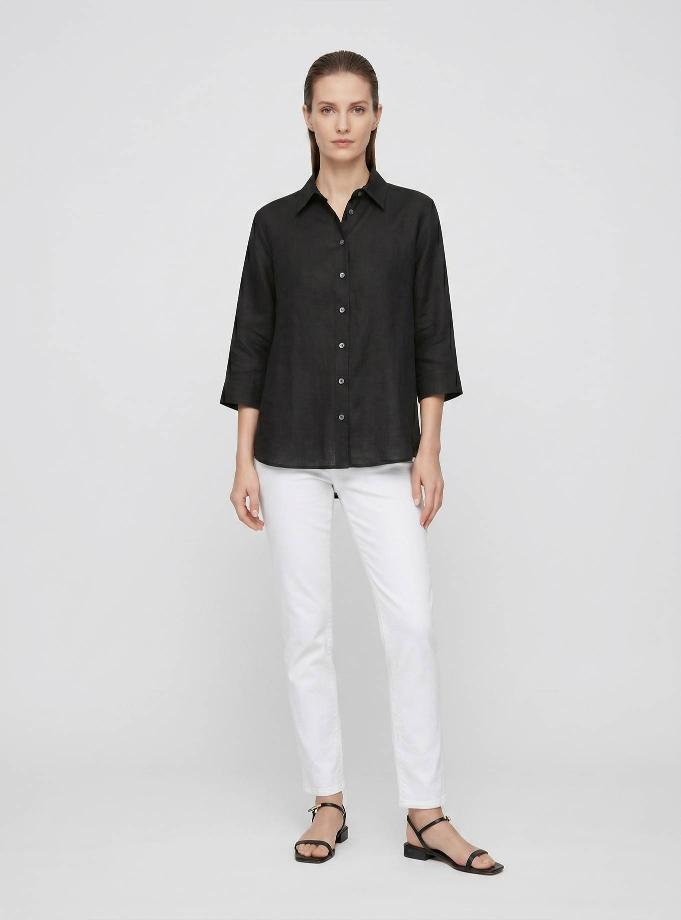 Men's inspired soft fit shirt with asymmetrical bottom. Cut carrè behind with cannon that gives volume to the garment. Regular shoulder slightly dropped with puff sleeves.