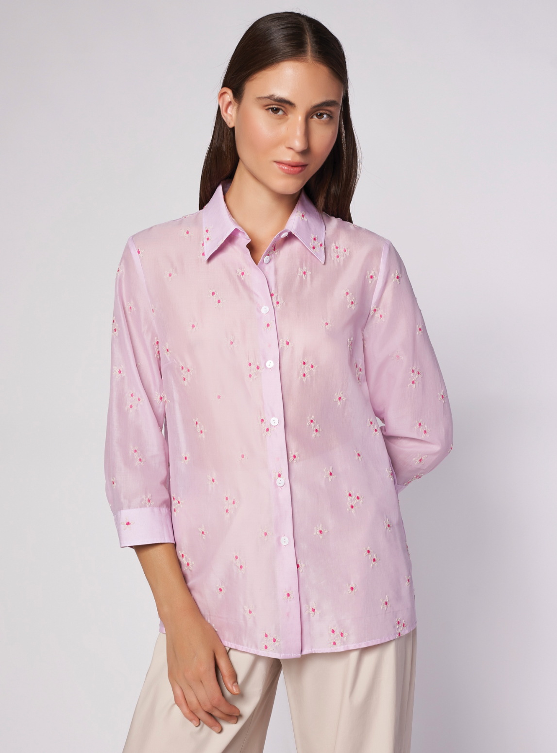 Regulart fit shirt, flared at the bottom with pronounced slits. Characterized on the back by a counterfold.