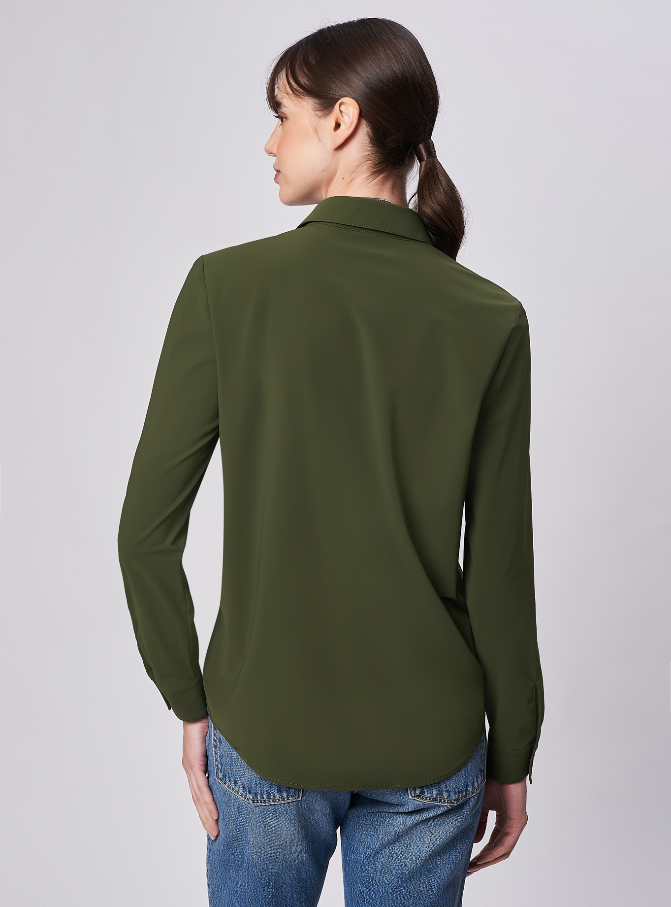 Long Texan shirt regular fit with a worn line. Shirt collar. Shoulder and sleeve regular length 3/4 short. Low flank length.