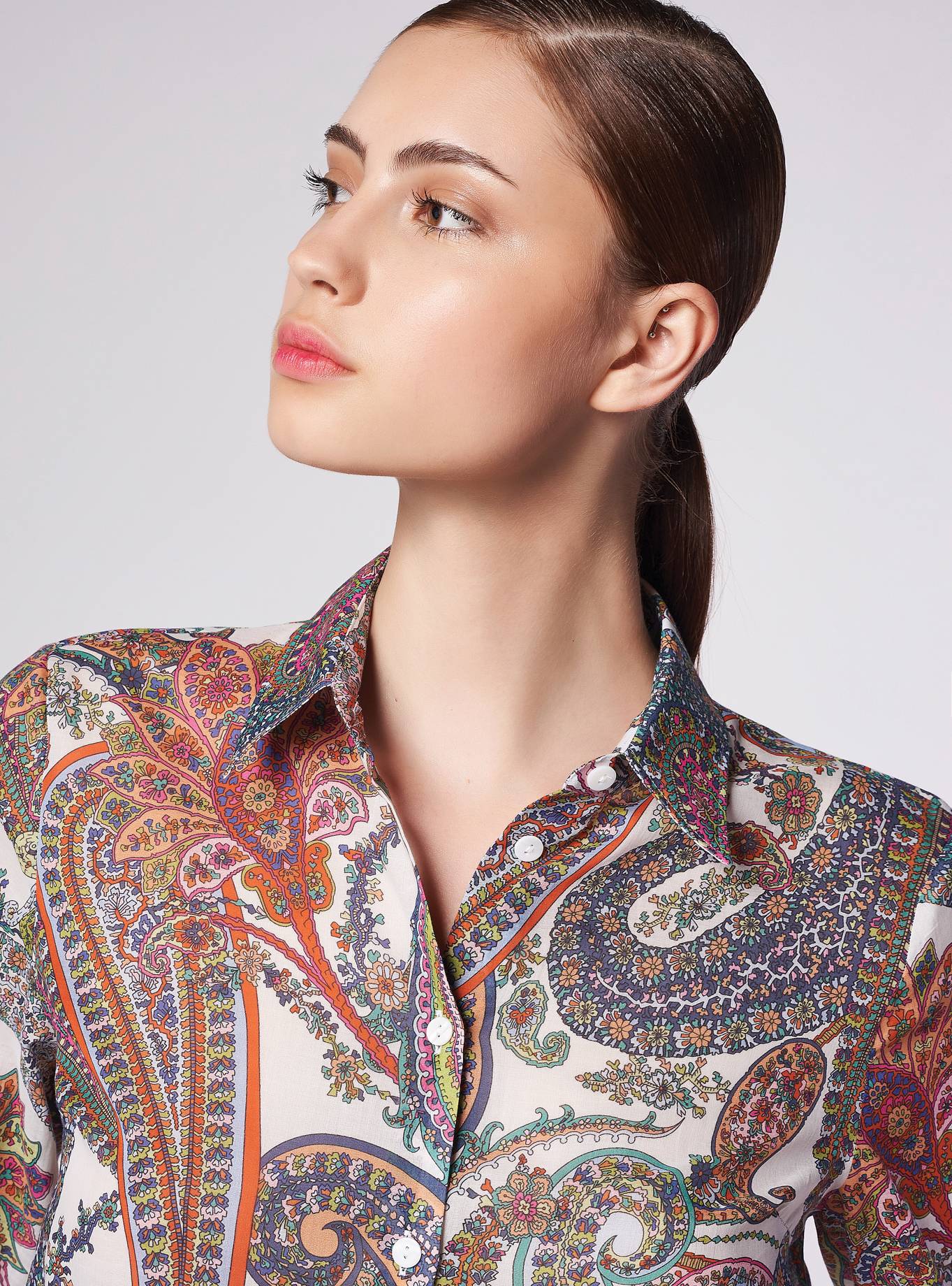 Regulart fit shirt, flared at the bottom with pronounced slits. Characterized on the back by a counterfold.
