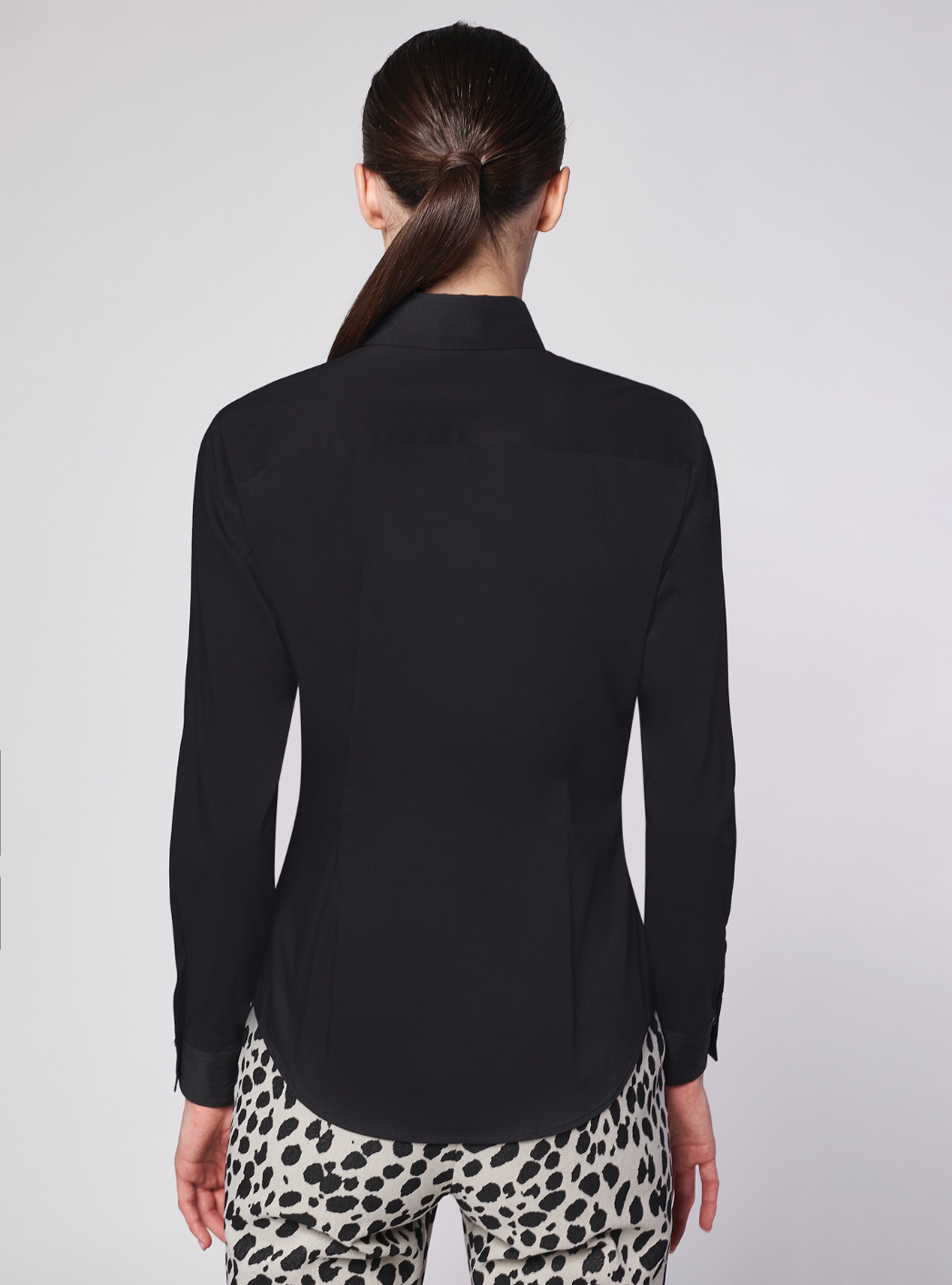 Slim fit shirt. Shirt collar. Regular sleeves with two-button cuff. Pleats front and back- Yoke at the back. Medium-short shirt, medium-high hip length.