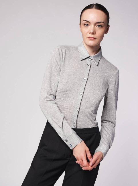 Slim fit shirt. Shirt collar. Regular sleeve, wrist one button. Pleats on the back. Medium-short shirt, medium-short side length.