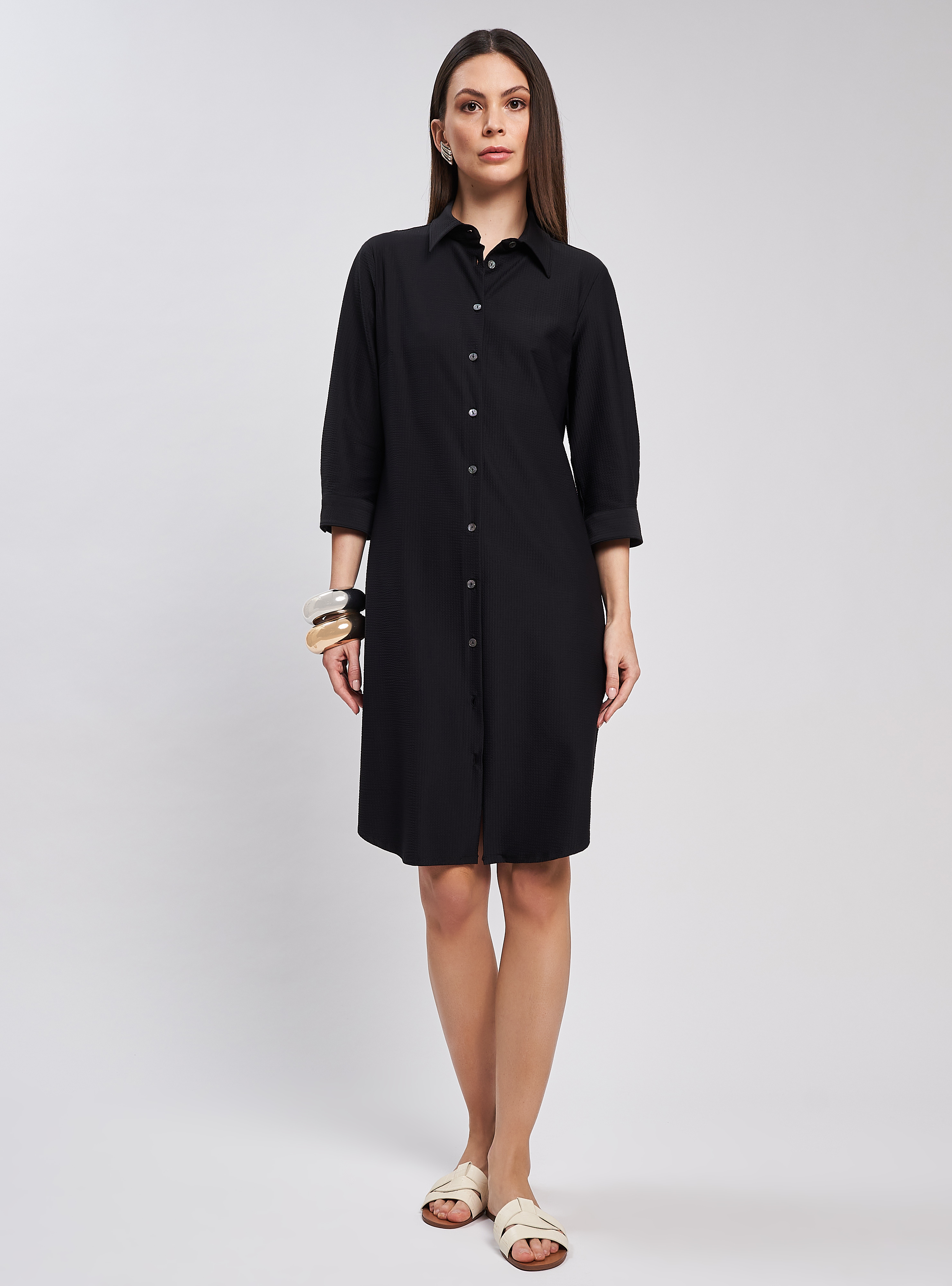 Abito a camicia, vestibilità regolare ma linea leggermente sfiancata.
