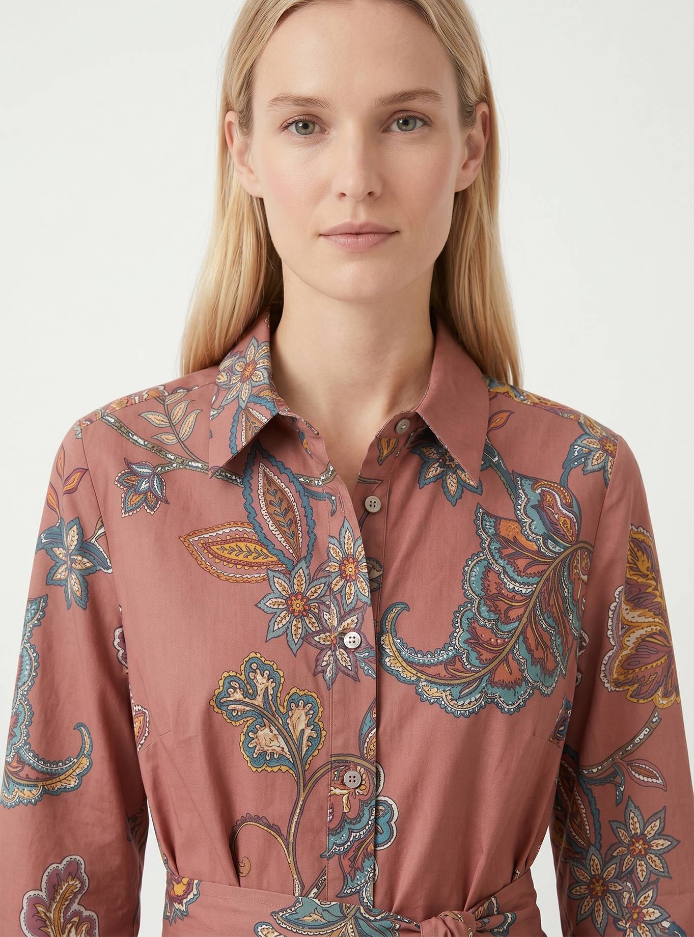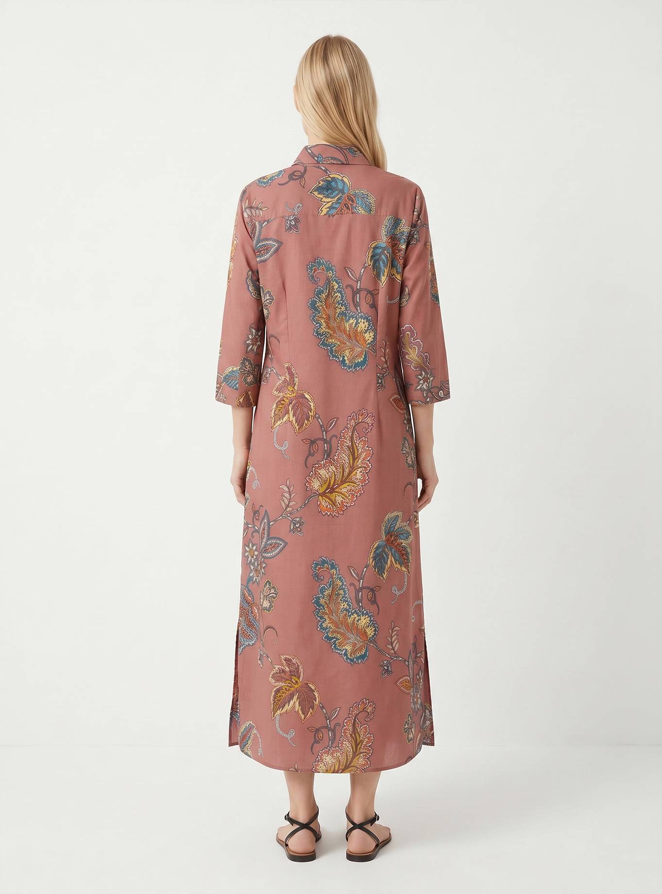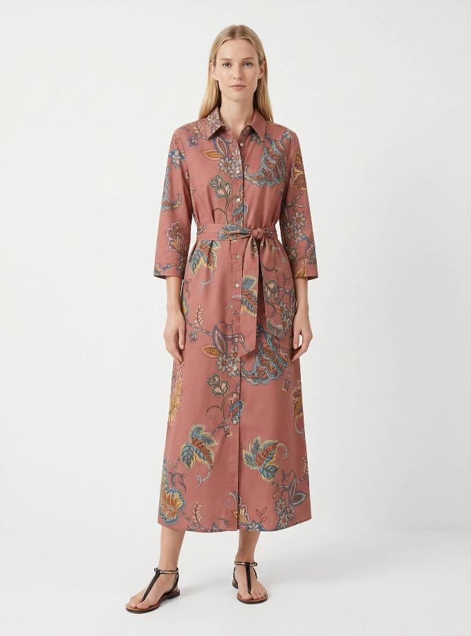 Abito lungo chemisier, vestibilità regolare con spacchi laterali. Tasche inserite nel fianco. Cintura in tessuto per mettere in risalto la silhouette.