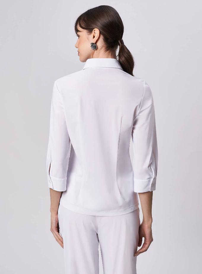 Camicia vestibilità aderente, pari al fondo, pinces sul dietro.