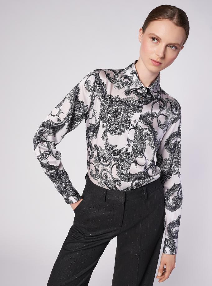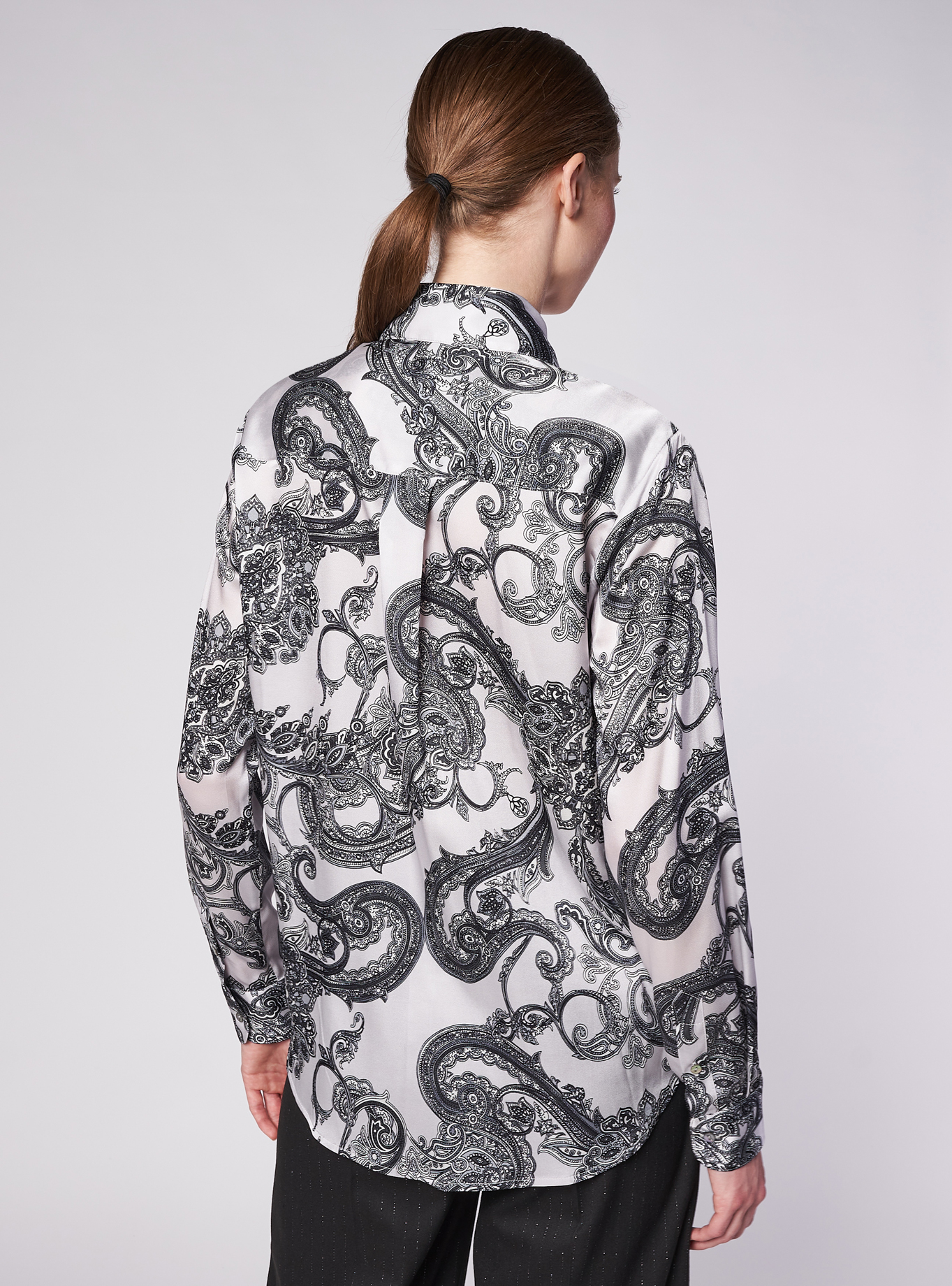 Camicia vestibilità morbida. Collo camicia . Manica regolare con polso un bottone e fessino. Carrè con cannoncino sul dietro. Camicia lunga, lunghezza fianco basso.