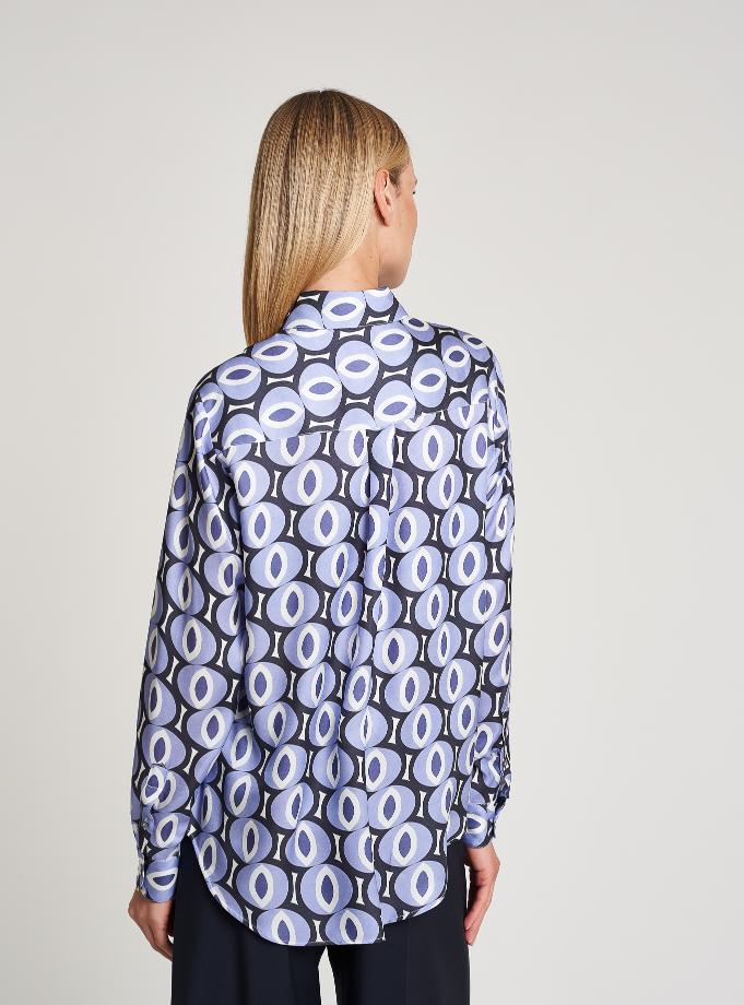 Camicia vestibilità morbida. Collo camicia . Manica regolare con polso un bottone e fessino. Carrè con cannoncino sul dietro. Camicia lunga, lunghezza fianco basso.