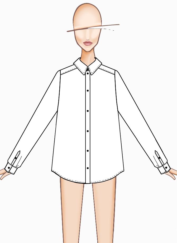 Camicia essenziale vestibilità morbida. Taglio carrè dietro con cannoncino che aggiunge volume al capo.