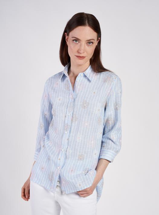 Camicia maschile vestibilità morbida con fondo asimmetrico. Taglio carrè dietro con cannoncino che regala volume al capo. Spalla regolare leggermente scesa con manica a sbuffo.
