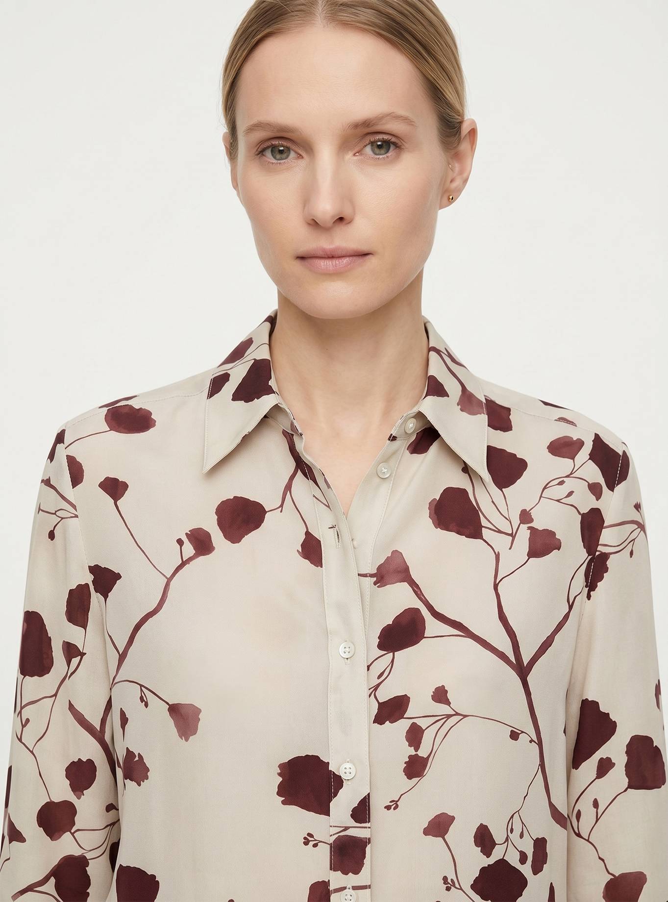 Camicia essenziale vestibilità morbida. Taglio carrè dietro con cannoncino che aggiunge volume al capo.