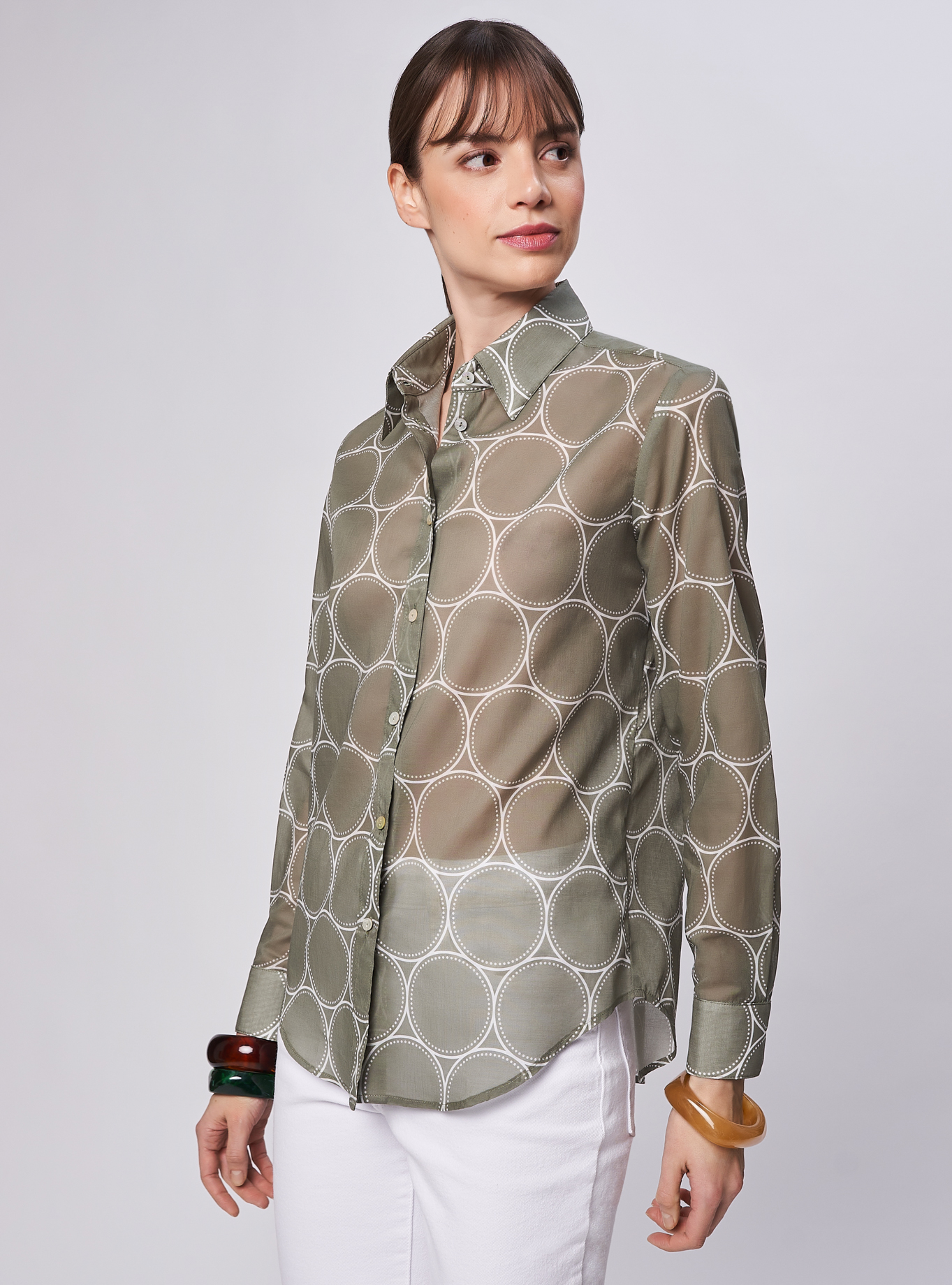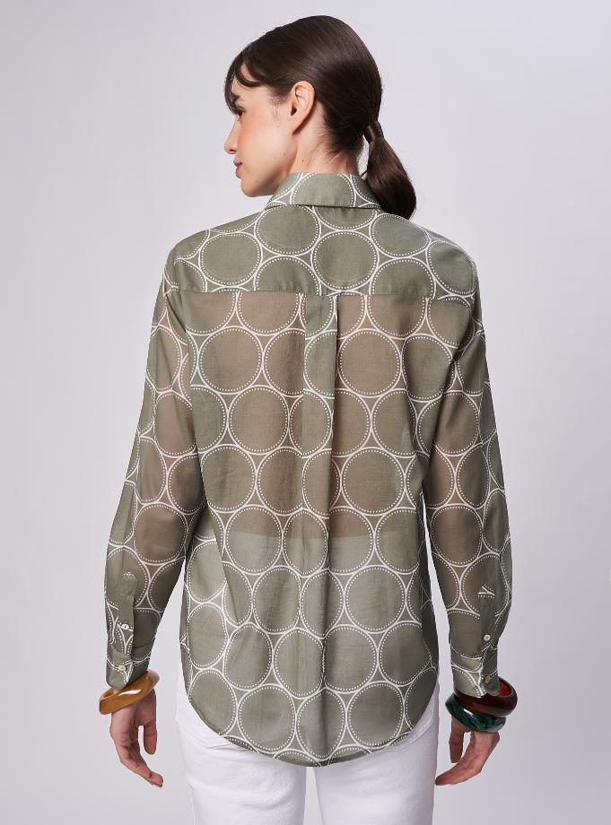 Camicia essenziale vestibilità morbida. Taglio carrè dietro con cannoncino che aggiunge volume al capo.