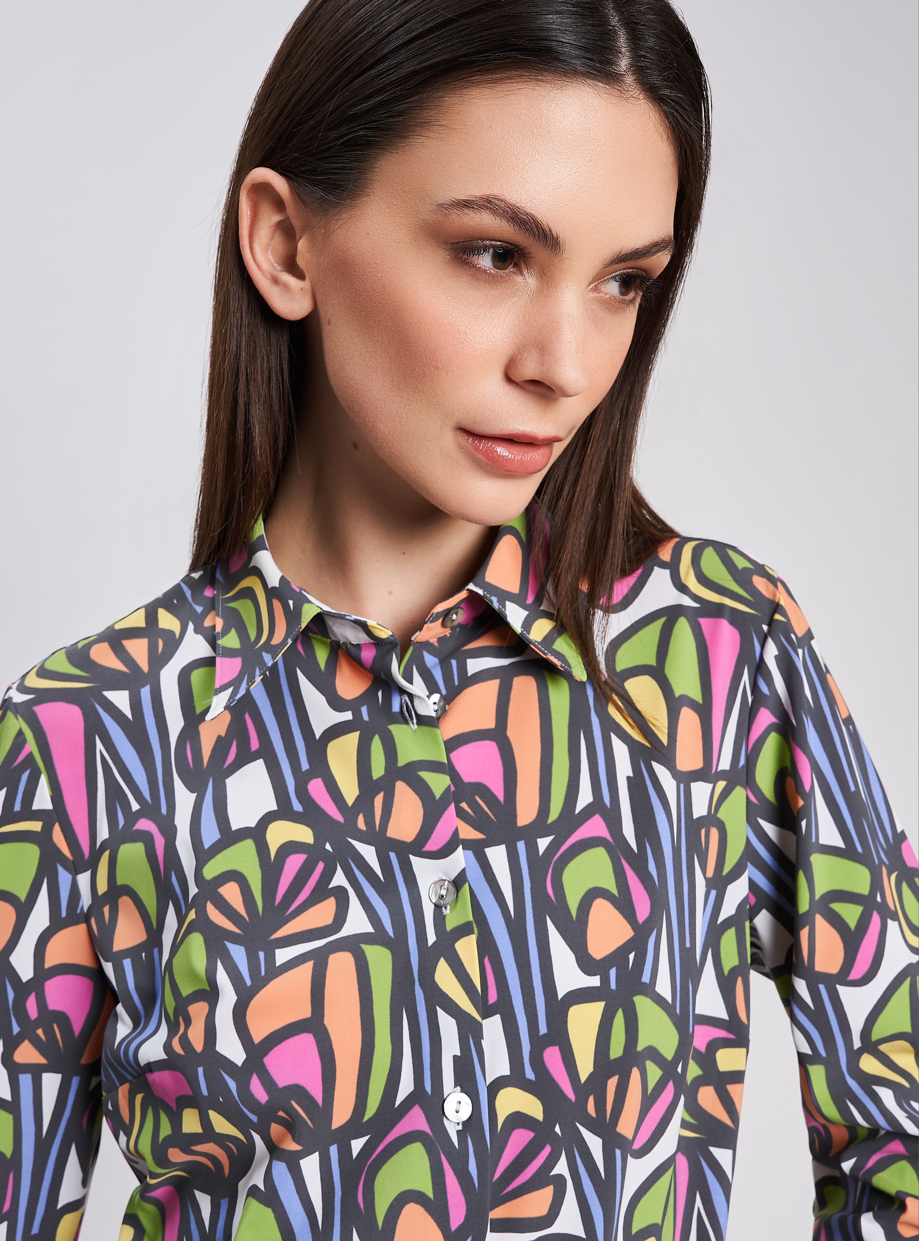 Camicia vestibilità aderente, pari al fondo, pinces sul dietro.