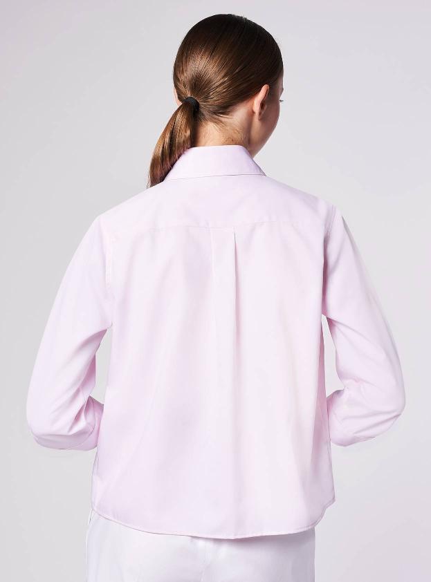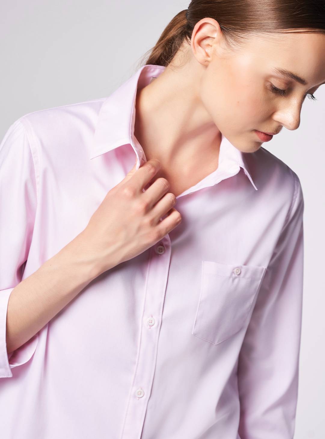 Camicia con vestibilità regolare, linea dritta. Spalle regolari, collo a camicia. Manica 3/4 con polso e un bottone. Taschino nel davanti sinistro con bottone. Allacciatura con bottoni a vista. Lunghezza fianco.