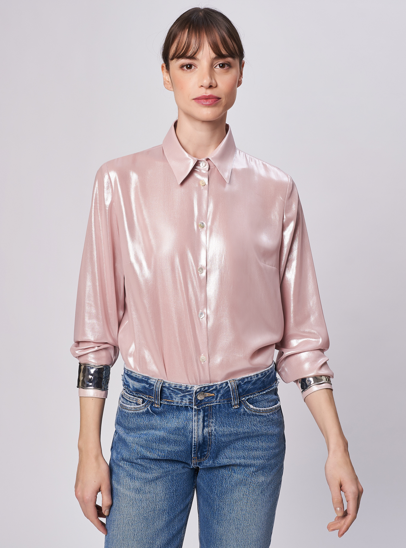 Camicia essenziale vestibilità regolare. Taglio carrè dietro con cannoncino.