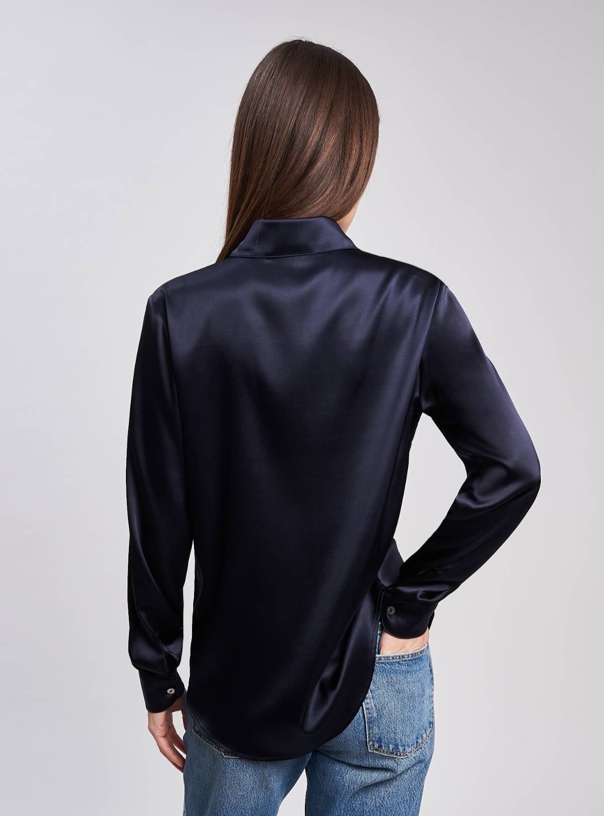 Camicia essenziale vestibilità regolare. Taglio carrè dietro con cannoncino.