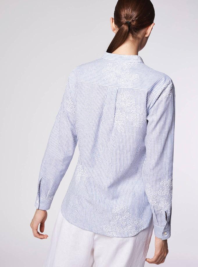 Camicia vestibilità regolare con collo alla coreana. Taglio carrè dietro con cannoncino che aggiunge volume al capo.