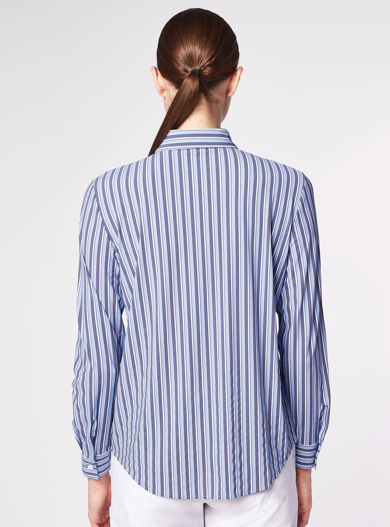 Camicia vestibilità regolare. Spalla e manica regolare lunga con polsino un bottone. Linea morbida, stondata al fondo.